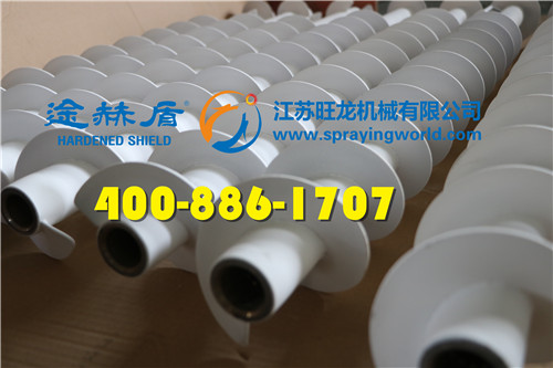 該品種螺旋軸整體經陶瓷工藝處理,硬度增加,耐磨耐腐性能尤其顯著,耐高溫1350°C , 耐酸堿鹽腐蝕,整體呈白色,在粉體氧化鋁,氧化鋯粉體或顆粒輸送行業廣泛使用,涂層結合強度高,不易脫落。